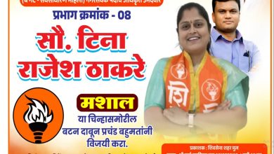 ▪️मुल नगरपरिषद निवडणूक २०२५ : शिवसेना (उ. बा. ठा.) च्या युवा लोकाभिमुख रणरागिणी सौं. टीना राजेश ठाकरे प्रभाग ०८च्या मैदानात..