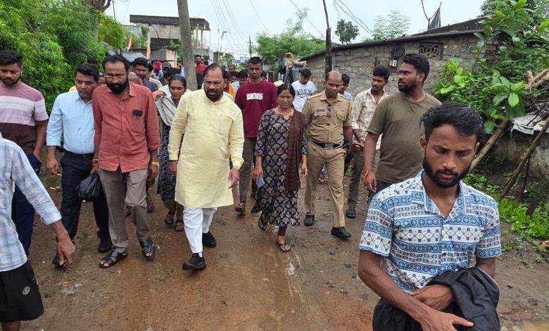 कालपासून चंद्रपूरात मुसळधार पाऊस सुरू आहे. त्यामुळे अनेक भागात पाणी शिरले असून नागरिकांचे मोठ्या प्रमाणात नुकसान झाले आहे. या पावसामुळे शेतपिकांचेही मोठ्या प्रमाणावर नुकसान झाले आहे. दरम्यान, आज आमदार किशोर जोरगेवार यांनी अधिकाऱ्यांसह ग्रामीण भागाचा दौरा करून परिस्थितीची पाहणी केली. यावेळी पडोली येथील आमटा वॉर्डातील स्थितीचीही त्यांनी पाहणी केली.