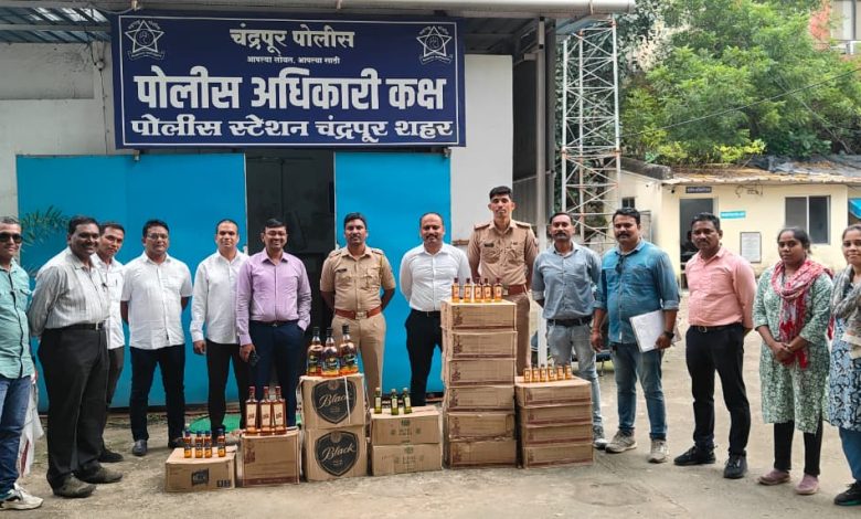 चंद्रपूर – ( इंडिया 24 न्युज ) : पोलीस स्टेशन चंद्रपुर शहर येथील डि.बी. पथकातील पोलीस अधिकारी व अंमलदार हे पो. स्टे. परीसरामध्ये पेट्रोलींग करीत असता पो. उपनि. दत्तात्रय कोलटे यांना मुखबीरव्दारे खबर मिळाली की, एकोरी वार्ड, येथे सुनिलकुमार मुल्ले हे त्यांचे राहाते घरी अवैध्यरित्या विदेशी दारू बाळगुन विक्री करीत असल्याबातची खबर मिळाल्याने सदर ठिकाणी पो. स्टॉफ व पंचासह जावुन प्रोव्ही रेड केली असता नमुद आरोपी नामे सुनिलकुमार राजकुमार मुल्ले, वय ५६ वर्ष, रा. एकोरी वार्ड, चंद्रपुर यांचे राहाते घरी अवैध्यरित्या एकुण १,५४,४९०/- रू ची विदेशी दारूचा माल मिळुन आल्याने पंचासमक्ष नमुद माल जप्त करण्यात आला असुन नमुद आरोपी इसमाविरूध्द पोलीस स्टेशन चंद्रपुर शहर येथे अपराध कमांक ७२३/२०२५ कलम ६५ (ई) म.दा. का. अन्वये गुन्हा नोंद करून तपासात घेतला.