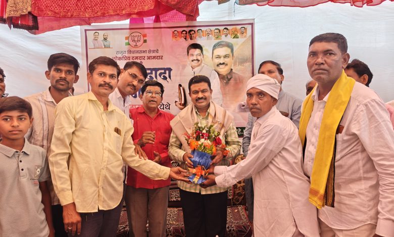 यावेळी आमदार देवराव भोंगळे यांनी गावात येताच त्यांचे आदिवासी बांधवांनी जल्लोषात स्वागत केले. यावेळी पारंपारिक वाद्यांच्या गजरात पारंपरिक आदिवासी नृत्य सादर करण्यात आले.या आदिवासी नृत्याने आमदार भोंगळे भारावून गेले.