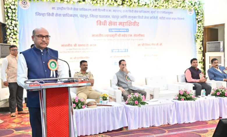 चंद्रपूर : ( इंडिया 24 न्युज ) – दि. 22 : भारतीय राज्यघटनेमुळे नागरिकांना आपल्या अधिकारांची माहिती होत आहे. मात्र अधिकाराचा वापर कसा करावा, हे अजूनही नागरिकांपर्यंत पूर्णपणे पोहोचले नाही. त्यासाठीच विधीसेवेचा उपयोग अत्यंत महत्वाचा आहे. मोफत विधीसेवेच्या माध्यमातून शेवटच्या घटकांपर्यंत न्याय पोहचविणे आपले कर्तव्य आहे, असे प्रतिपादन मुंबई उच्च न्यायालय, नागपूर खंडपीठाचे न्यायमुर्ती तथा चंद्रपूर जिल्ह्याचे पालक न्यायमुर्ती महेंद्र नेरलीकर यांनी केले.