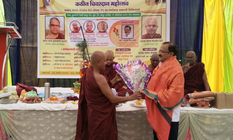 рдореБрд▓ – ( рдЗрдВрдбрд┐рдпрд╛ реирек рдиреНрдпреВрдЬ ) : рд╡рд░реНрд╖рд╛рд╡рд╛рд╕ рд╕рдорд╛рдкреНрддреА рд╕рдВрдШрджрд╛рди рдХрдареАрдг рдЪрд┐рд╡рд░рджрд╛рди рдорд╣реЛрддреНрд╕рд╡ рднрджрдВрдд рд╕рдВрдШрд╡рд╕ рдереЗрд░реЛ рдпрд╛рдВрдЪреНрдпрд╛ резрепрд╡реНрдпрд╛ рд╡рд░реНрд╖рд╛рд╡рд╛рд╕ рд╕рдорд╛рдкреНрддреАрдЪреНрдпрд╛ рдирд┐рдорд┐рддреНрддрд╛рдиреЗ рдмреБрджреНрдзрдЧрд┐рд░реА рдореБрд▓ рдпреЗрдереЗ рдХрд╛рд░реНрдпрдХреНрд░рдо рдЖрдпреЛрдЬрд┐рдд рдХрд░рдгреНрдпрд╛рдд рдЖрд▓рд╛ рд╣реЛрддрд╛. рд╕рджрд░ рдХрд╛рд░реНрдпрдХреНрд░рдорд╛рд▓рд╛ рд╢реНрд░рджреНрдзреЗрдп рднрджрдВрдд рд╕реБрдордирд╡рдВрдиреЛ рдорд╣рд╛рдереЗрд░реЛ рдорд╣рд╛рд╕рдЪрд┐рд╡ рдорд╣рд╛рд░рд╛рд╖реНрдЯреНрд░ рдкреНрд░рджреЗрд╢ рднрд┐рдХреНрдЦреВ рд╕рдВрдШ, рд╢реНрд░рджреНрдзреЗрдп рднрджрдВрдд рд╕рдВрдШрд╡рдВрд╕ рдереЗрд░реЛ рдмреБрджреНрдзрдЧрд┐рд░реА рдЯреЗрдХрдбреА рдореБрд▓, рднрджрдВрдд рдЖрдирдВрдж рдереЗрд░реЛ рдмрд▓реНрд▓рд╛рд░рдкреВрд░, рднрд┐рдХреНрдЦреВ рдзрдореНрдордкреНрд░рдХрд╛рд╢ рд╕рдВрдмреЛрдзреА рдЪрдВрджреНрд░рдкреВрд░, рднрд┐рдХреНрдЦреВ рд╕реБрдЬрд╛рдд рдирд╛рдЧрдкреВрд░, рдпрд╛рдВрдЪреНрдпрд╛ рдкреНрд░рдореБрдЦ рдЙрдкрд╕реНрдерд┐рддреАрдд рдХрд╛рдБрдЧреНрд░реЗрд╕рдЪреЗ рдкреНрд░рджреЗрд╢ рд╕рд░рдЪрд┐рдЯрдгреАрд╕ рд╕рдВрддреЛрд╖ рд╕рд┐рдВрд╣ рд░рд╛рд╡рдд рдпрд╛рдВрдЪрд╛ рд╕рддреНрдХрд╛рд░ рдХрд░рдгреНрдпрд╛рдд рдЖрд▓рд╛. рднрд┐рдХреНрдЦреВ рд╕рдВрдШрд╛рд▓рд╛ рдЖрдЬрдкрд░реНрдпрдВрддрдЪреНрдпрд╛ рджрд┐рд▓реЗрд▓реНрдпрд╛ рдзрдореНрдорджрд╛рдирд╛рдЪреЗ рддрд╕реЗрдЪ рдмреБрджреНрдзрдЧрд┐рд░реА рдЯреЗрдХрдбреА рдореБрд▓ рдпреЗрдереЗ рднрджрдВрдд рд╕рдВрдШрд╡рдВрд╕ рдереЗрд░реЛ рдпрд╛рдВрдЪреНрдпрд╛ рдирд┐рд╡рд╛рд╕рд╛рдХрд░рд┐рддрд╛ рдПрдХ рд╕реБрдВрджрд░ рдЕрд╢реА рдХреБрдЯреА рдЙрдкрд▓рдмреНрдз рдХрд░реВрди рджрд┐рд▓реА. рддреНрдпрд╛рдВрдЪреНрдпрд╛ рдпрд╛ рдХрд╛рд░реНрдпрд╛рдЪреА рджрдЦрд▓ рдШреЗрдКрди рднрд┐рдХреНрдЦреВ рд╕рдВрдШрд╛рдЪреНрдпрд╛ рд╡рддреАрдиреЗ рд╢рд╛рд▓ рд╡ рдкреБрд╖реНрдкрдЧреБрдЪреНрдЫ рджреЗрдКрди рд╕рддреНрдХрд╛рд░ рдХрд░рдгреНрдпрд╛рдд рдЖрд▓рд╛. рд╕рддреНрдХрд╛рд░рд╛рдЪреНрдпрд╛ рдХрд╛рд░реНрдпрдХреНрд░рдорд╛рджрд░рдореНрдпрд╛рди рд╕рдВрддреЛрд╖ рд╕рд┐рдВрд╣ рд░рд╛рд╡рдд рдпрд╛рдВрдиреА рднрд┐рдХреНрдЦреВ рд╕рдВрдШрд╛рд▓рд╛ рд╕рдорд╛рдЬрд╛рдиреЗ рджрд╛рди рджреЗрдКрди рднрдВрддреЗрдЬреА рдпрд╛рдВрдирд╛ рдмреБрджреНрдз рдзрдореНрдорд╛рдЪрд╛ рдкреНрд░рдЪрд╛рд░ рдкреНрд░рд╕рд╛рд░ рдХрд░рдгреНрдпрд╛рдХрд░рд┐рддрд╛ рдорджрдд рдХреЗрд▓реА рдкрд╛рд╣рд┐рдЬреЗ рдЕрд╕реЗ рдЙрдкрд╕реНрдерд┐рддрд╛рдВрд╕рдореЛрд░ рдирдореНрд░ рдЖрд╡рд╛рд╣рди рдХреЗрд▓реЗ. рддреНрдпрд╛рдВрдиреА рдЖрдкрд▓реЗ рдордиреЛрдЧрдд рд╡реНрдпрдХреНрдд рдХрд░рддрд╛рдирд╛ рднрд┐рдХреНрдЦреВ рд╕рдВрдШ рдЯрд┐рдХрд▓рд╛ рддрд░ рдмреБрджреНрдз рдзрдореНрдорд╛рдЪрд╛ рдкреНрд░рдЪрд╛рд░ рдкреНрд░рд╕рд╛рд░ рдореЛрдареНрдпрд╛ рдкреНрд░рдорд╛рдгрд╛рдд рд╣реЛрдИрд▓. рддрдерд╛рдЧрдд рдЧреМрддрдо рдмреБрджреНрдзрд╛рдВрдиреА рдЬрдЧрд╛рд▓рд╛ рд╕рдВрджреЗрд╢ рджрд┐рд▓рд╛ рддреЛ рдпрд╛ рд╕реГрд╖реНрдЯреАрдЪреНрдпрд╛ рдХрд▓реНрдпрд╛