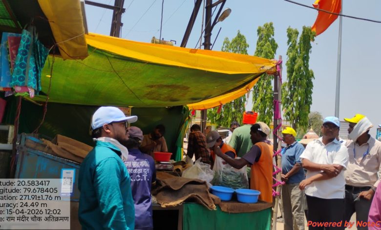 नागभीड – ( इंडिया 24 न्युज ) : नगर परिषद नागभीड तर्फे शहरातील अतिक्रमणाविरोधात पुन्हा एकदा कारवाईला सुरुवात करण्यात आली असून बाजार रस्ता व राम मंदिर चौक परिसरात संयुक्त पथकांद्वारे मोहीम राबविण्यात आली.